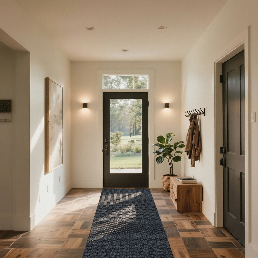 Upgrade your entryways and hallways with iCustomRug’s Weather Warrior Heavy Duty Runner – a commercial-grade floor protector designed to handle whatever life throws at it. This rugged indoor/outdoor carpet runner combines a thick, 3/8” profile with tough materials to shield your floors from mud, moisture, and wear. Made of premium polypropylene/polyester fibers bonded to a heavyweight rubber backing, it stays in place and won’t curl or slide, even under heavy foot traffic. Homeowners love how it traps dirt and water at the door, keeping floors clean and dry, while business owners trust its durability in high-traffic lobbies and corridors.
